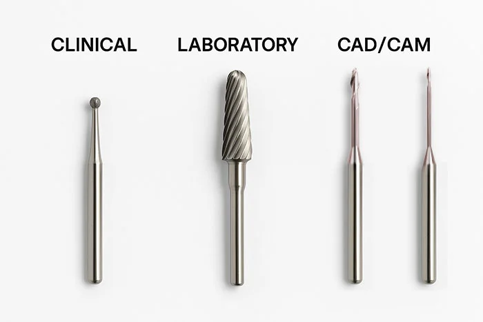 Not all dental burs are the same. Clinical burs are designed for the chairside, lab burs for finishing and detail work, and milling burs for CAD/CAM machines. Knowing the difference is the key to efficiency, accuracy, and predictable outcomes.